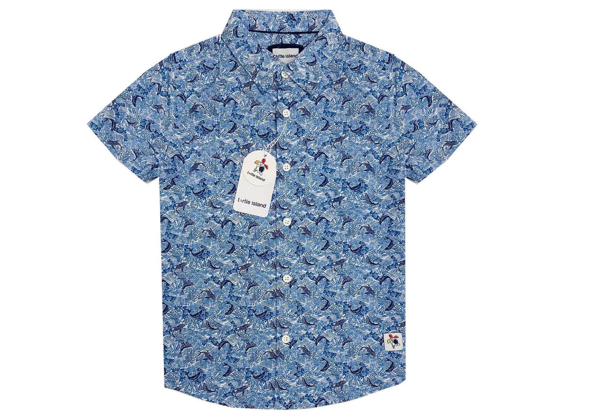 This short sleeve, regular collar shirt features an aquatic print, perfect for those who want to add a touch of nature to their wardrobe.