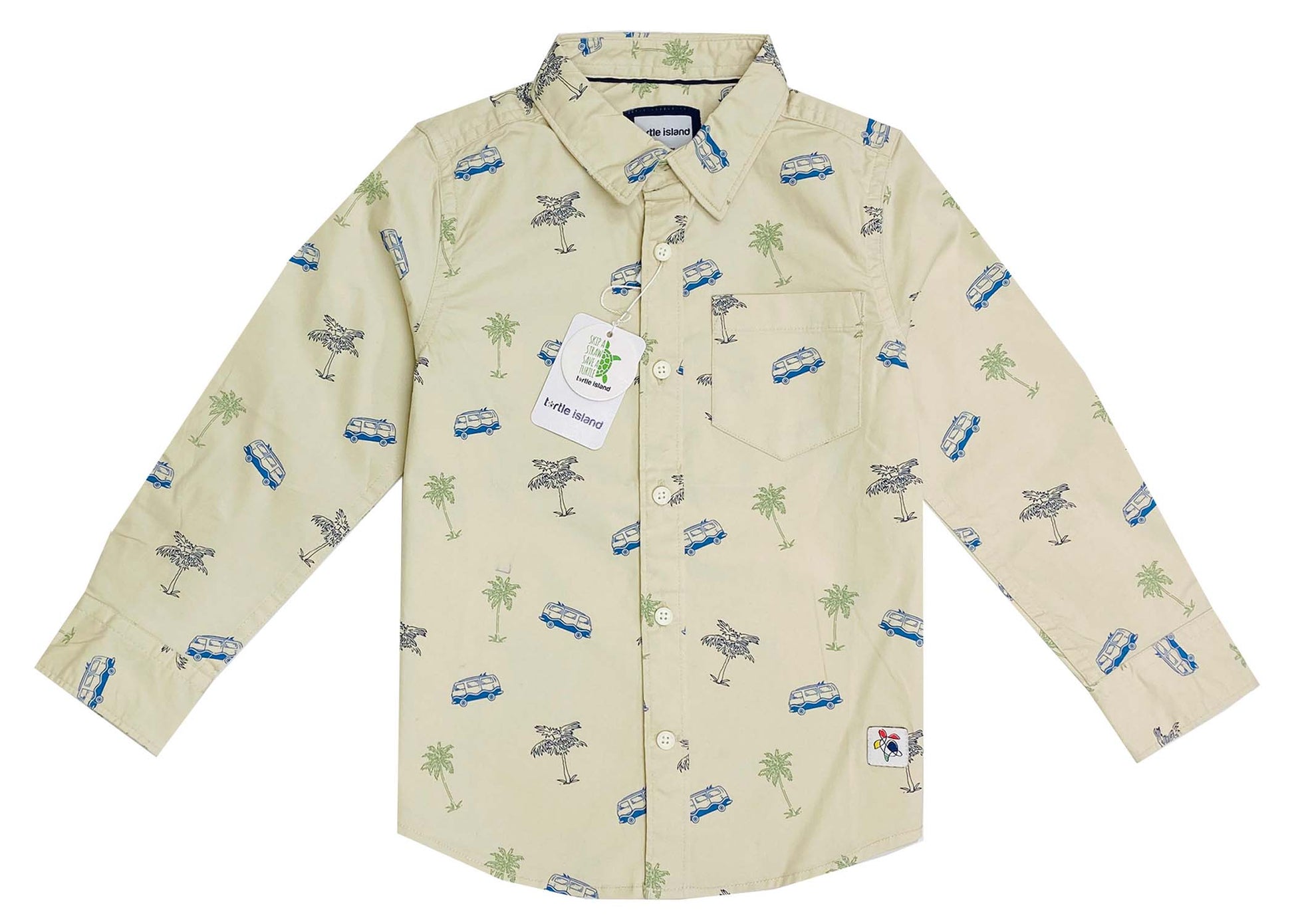 Expertly crafted from twill cotton, this shirt features a spread collar, button placket, full sleeves, and a curved hem, all adorned with a stylish palm tree print. Made with precision and attention to detail, this shirt is sure to elevate any outfit.